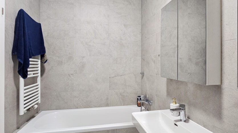 Stan u novogradnji u sklopu Green Side kompleksa ukupne korisne površine 54,37 m2. Sastoji se od ulaznog prostora, kupaonice, spavaće sobe, kuhinje povezane s dnevnim boravkom i blagovaonicom te lođe površine 4,22 m2 koja pruža dodatni prostor za opuštanje. Stanu pripada i vanjsko spremište površine 1,15 m2.