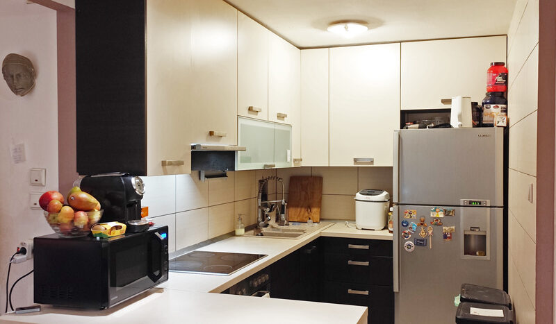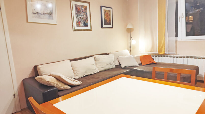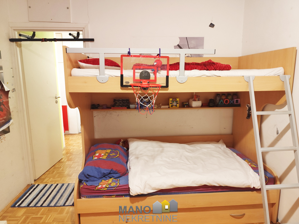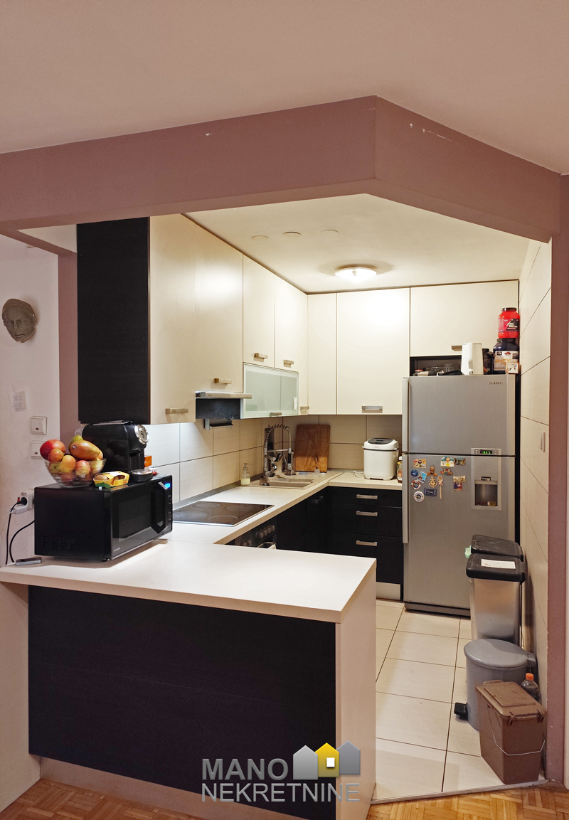 Stan je 2009.god kompletno renoviran i napravljena je dodatno jedna soba, tako da se stan sastoji od ulaznog dijela, dnevnog boravka, blagovaone, kuhinje koja je rađena po mjeri, dvije spavaće sobe, kupaone sa wc-om, te ostave u stanu.